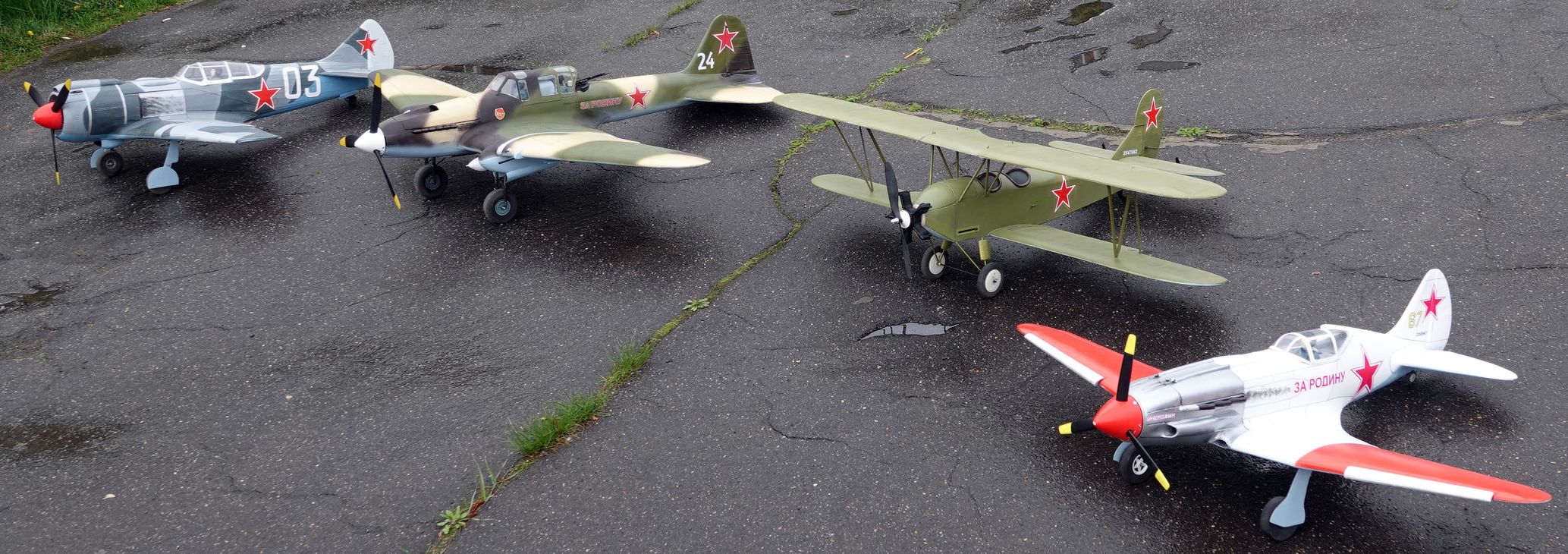 В составе выставочной экспозиции – копии учебного У-2, истребителей МиГ-3, Ла-5 и штурмовика Ил-2. Самолеты созданы бюро технического моделирования «Аэроплан», которым руководит Андрей Федоренко. Все модели летающие и не раз представлялись на конкурсах авиамоделистов в лётной программе.
