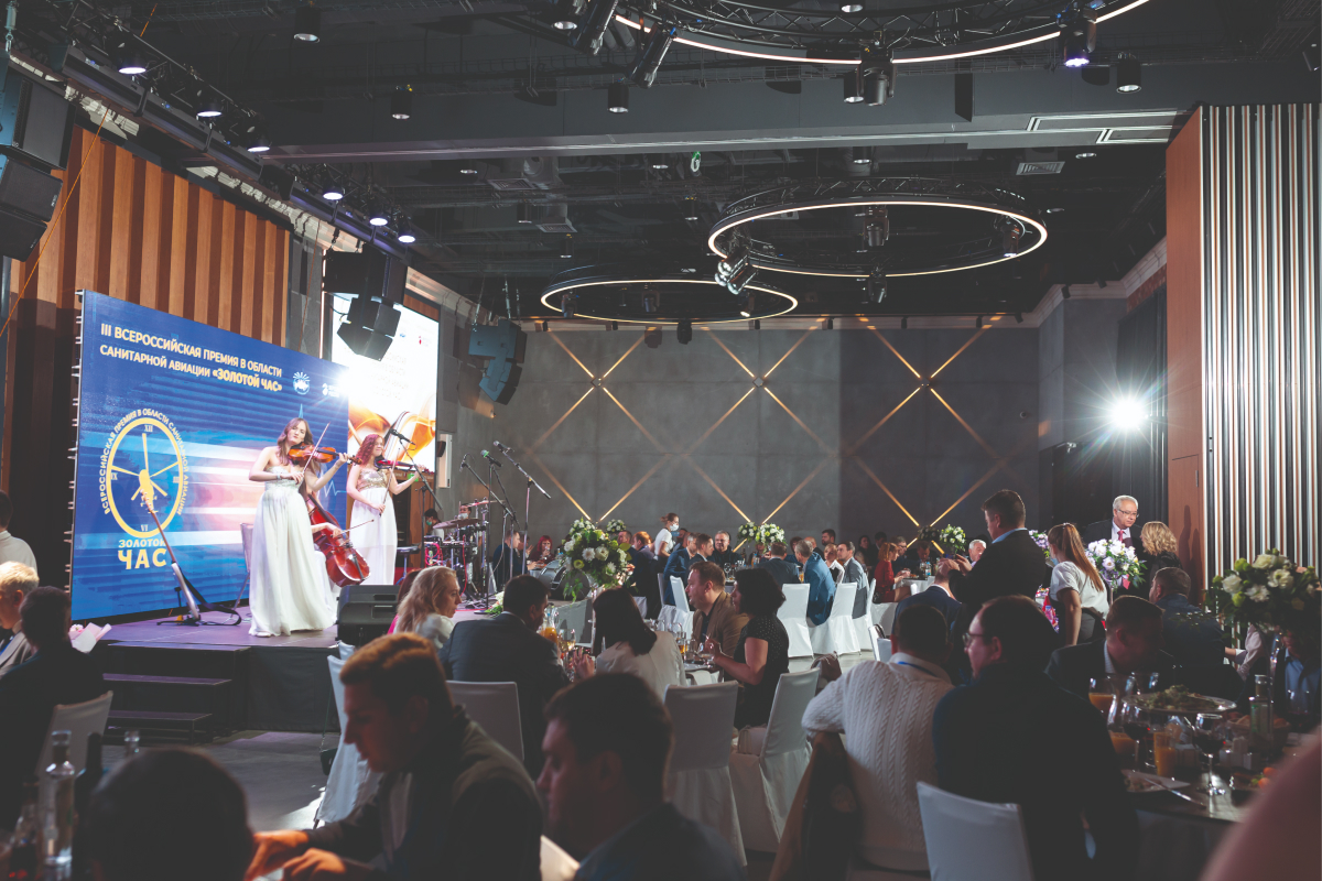 Насыщенный трудовой день на Форуме «САНАВИАЦИЯ-2021» сменился не менее насыщенным вечером. В 20:00 началась торжественная церемония награждения III Премии в области санитарной авиации «Золотой Час».