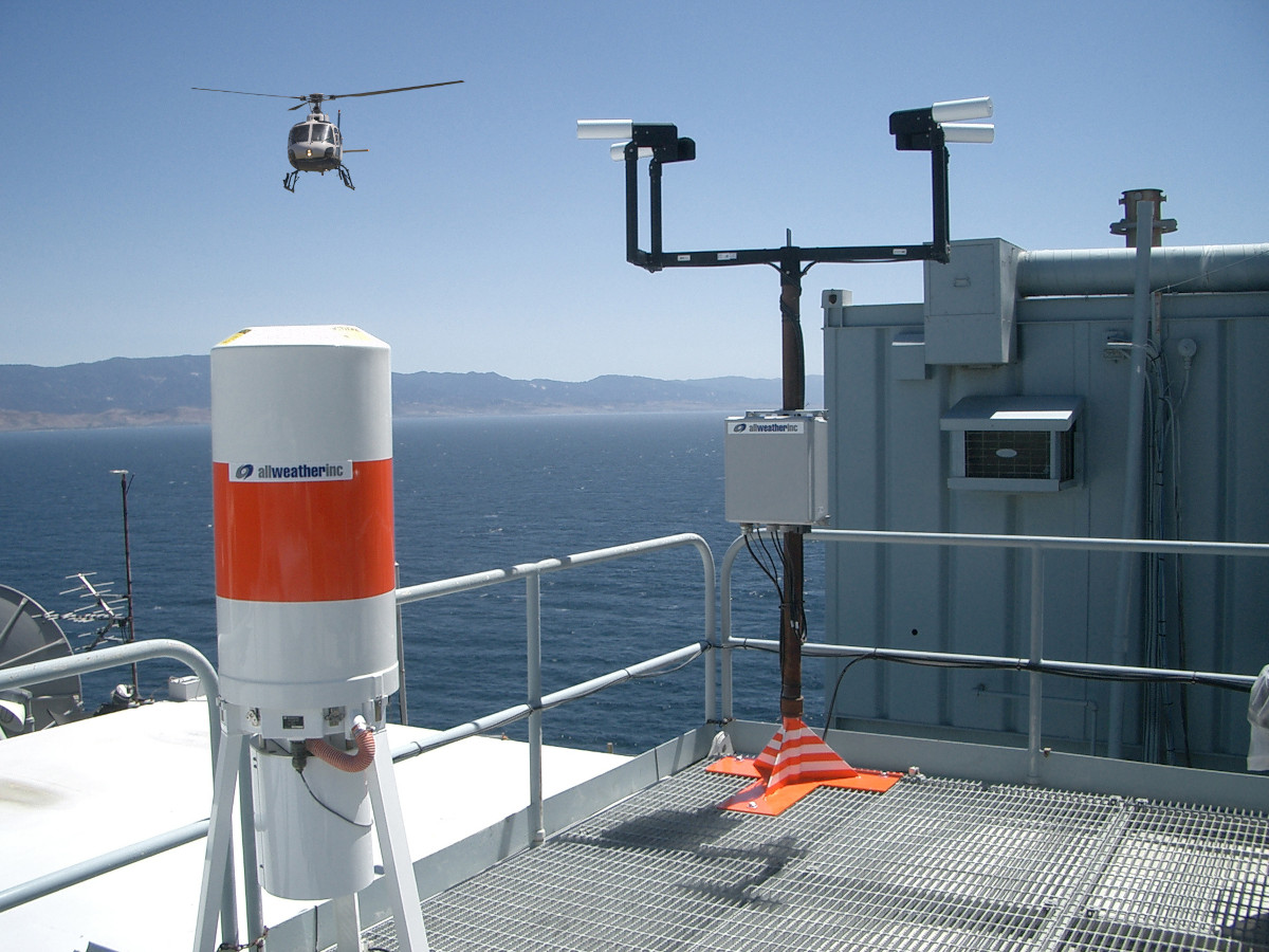 Более специализированный датчик также может обнаруживать замерзающие осадки. Возникновение молний может быть обнаружено с помощью местных датчиков или путем подключения системы к более крупной сети обнаружения. Кстати, системы AWOS для вертолетных площадок включают в себя современные ультразвуковые датчики ветра с подогревом, что снимает проблему замерзания, характерную для многих механических датчиков.
