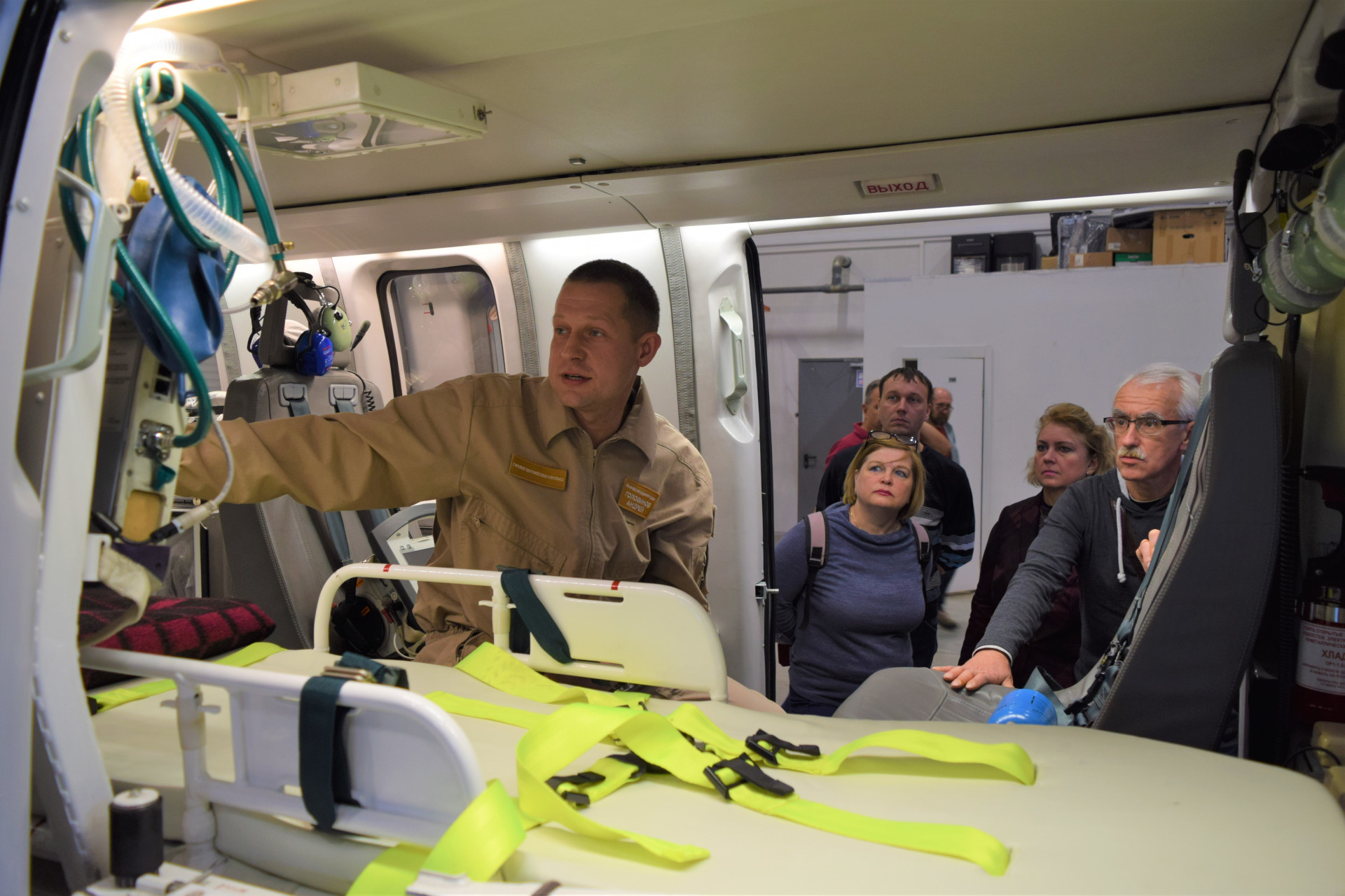 Позже, совместно с сотрудниками ВЦМК «Защита», ознакомили медиков с техническими характеристиками медицинских вертолетов «Ансат», продемонстрировали устройство медицинского модуля воздушного судна и его оборудование, а также провели практические занятия, включающие подготовку пациента к транспортировке, погрузку/выгрузку и использование оборудования медицинского модуля.